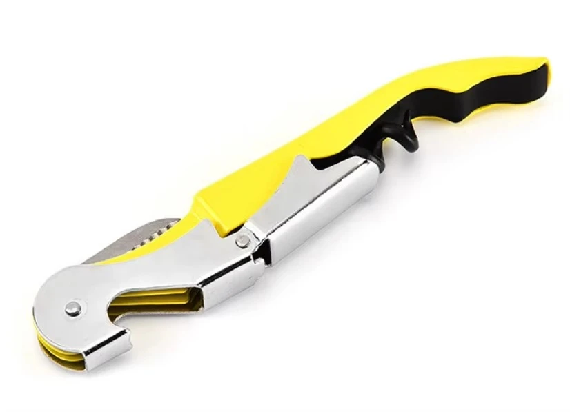 The all purpose corkscrew is the perfect tool for any wine lover. With its sleek and compact design, this corkscrew wine opener easily fits into any kitchen drawer or bar tool kit. The durable stainless steel, black coated handle ensures that it will last many years. The corkscrew all purpose opener features a classic screw design, With its built-in foil cutter allowing you to easily remove any cork from a bottle of wine. The built-in bottle opener also makes it easy to pop open any beer or soda bottle. Whether you're a wine connoisseur or just enjoy the occasional glass, this all-purpose corkscrew opener is a must-have for any restaurant staff.