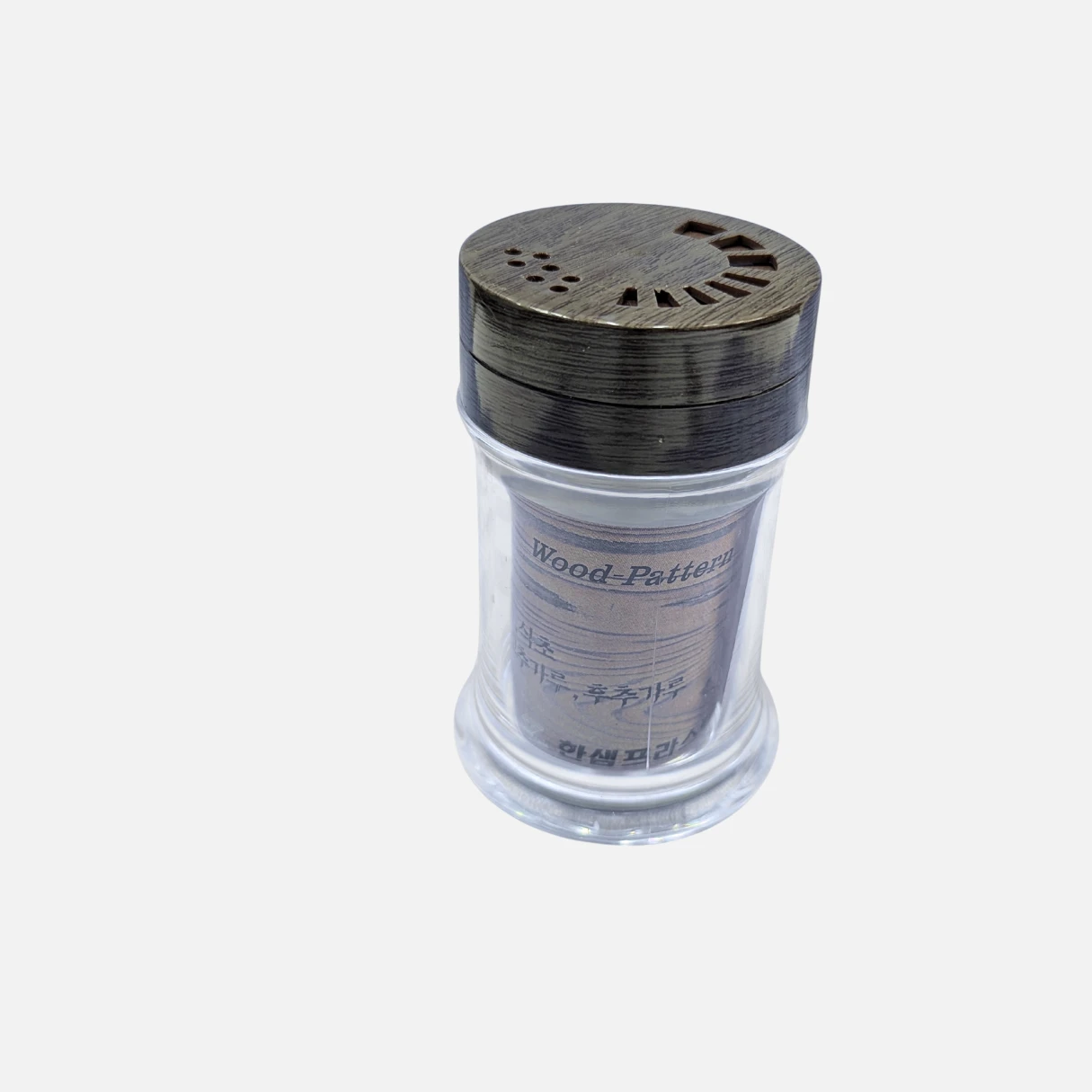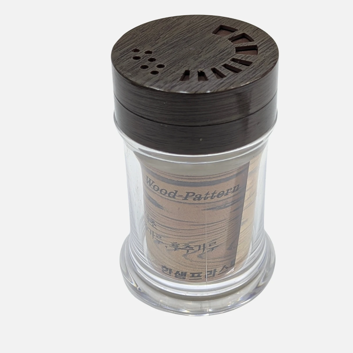 monitoring of the level of content in it. It has a perforated wood-patterned plastic cup that helps sprinkle salt on food, preventing overpouring. This rust-resistant