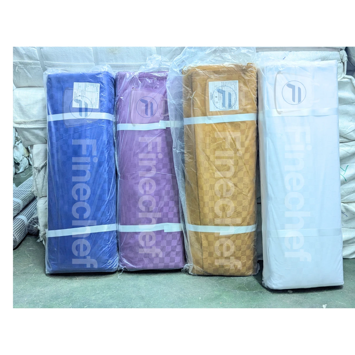 This high quality damask fabric roll comes in a variety of colours, including red, orange, gold, and white. They are made from durable woven material that maintains shape and texture. Each roll features a subtle checkered pattern that adds a touch of elegance to any space. The fabric is smooth and soft, making it ideal for tablecloths and event decor. They are perfect for hotels, restaurants and event planners.