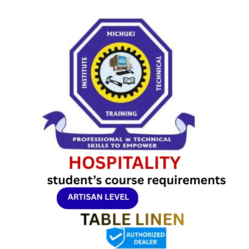 Get yourself the service linen full package for Michuki Technical Training Institute Artisan hospitality students. This official table linen set is designed for proper table presentation and gives a real restaurant service experience. The table service linen set includes: -1 White, damask tablecloth (60 inches) -1 Pink, poplin checked slip cloth (40 inches) -12 Pink, damask napkins (20 inches) |