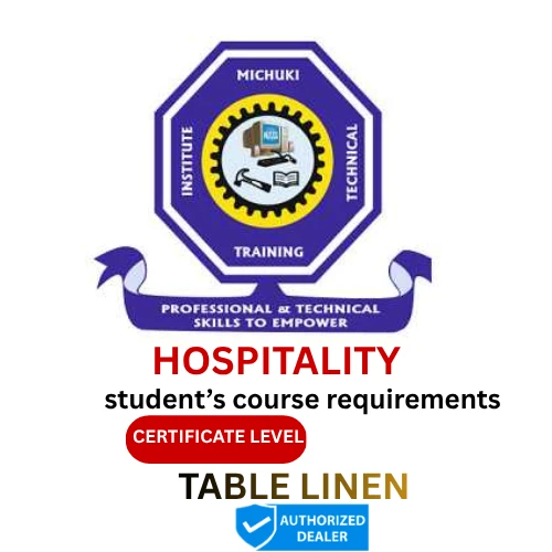 Obtain the standard official restaurant service linen for Michuki Technical Training Institute Certificate, hospitality students. This set comes with all the required tablecloths that meet the school hospitality service standards and match all training needs. The table linen set includes: -1 White, damask tablecloth (60 inches) -1 Maroon, poplin slip cloth (40 inches) -12 Maroon, damask napkins (20 inches) |
