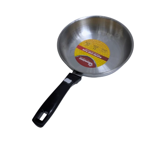 The Master Chef Plus Frying Pan is made from stainless steel and built for everyday cooking. It has a double layered bottom that helps retain heat well, allowing food to cook evenly across the surface. This makes it practical for frying eggs, searing meat, sautéing vegetables, or preparing quick family meals. The stainless steel body feels sturdy and handles regular kitchen use with ease. The steady heat retention also helps reduce hot spots while cooking. A reliable stainless steel frying pan for home kitchens that need consistent results day after day. Key Products Attributes: