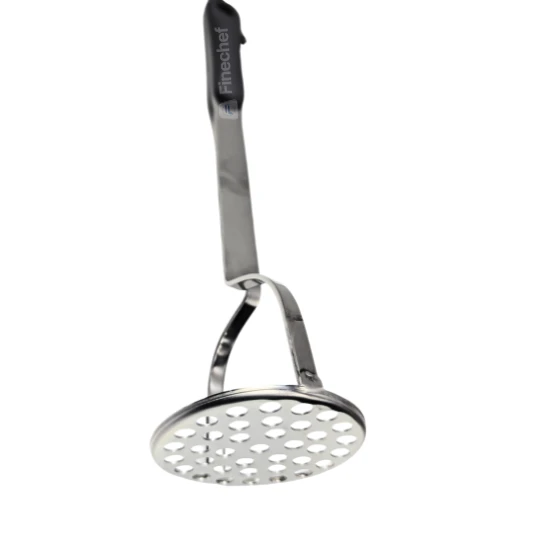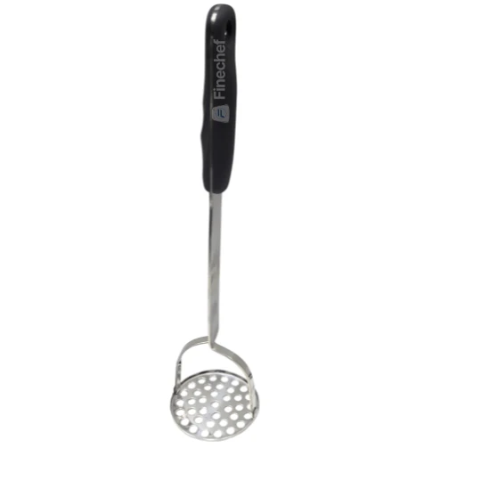The Stainless Steel Potato Masher / Vegetable Masher is designed to make mashing smooth, quick, and comfortable in both home and commercial kitchens. It features a strong stainless steel perforated head that evenly breaks down potatoes, vegetables, and fruits without sticking. The long handle provides good leverage, while the black grip offers comfort and control during use. This masher works well for preparing mashed potatoes, bananas, pumpkins, avocados, and other soft foods. Its stainless steel construction is sturdy, easy to clean, and suitable for everyday kitchen use. Key Attributes of the Stainless Steel Potato Masher / Vegetable Masher