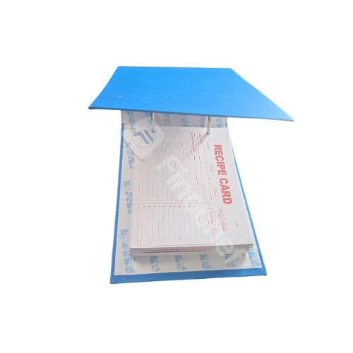 Organize your recipe cards with this portable recipe file, also known as a ring binder. It features a sturdy cover and a strong metal lever mechanism with two rings to hold cards securely. Its wide capacity enables it to hold a large number of your recipe cards, making it perfect for organized storage. |