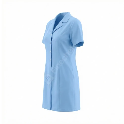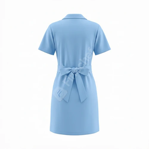 This sky blue housekeeping dress is designed for comfort and durability during long shifts. It has two adjustable wraps that are tied at the back for a secure fit. Its lightweight design allows free movement, making it perfect for housekeeping trainees and cleaning staff in hotels and resorts. |