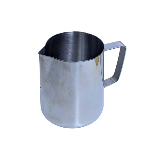This milk frothing jug is a practical choice for steaming and pouring milk in busy cafés or at home. The smooth metal body heats quickly and evenly, helping you create creamy foam for cappuccino, latte, and other espresso drinks. Its firm handle feels steady in your hand, giving you better control while pouring. The shaped spout makes it easier to guide milk neatly into cups or try simple latte art patterns. Easy to rinse and wipe clean after use, this milk frothing pitcher works well for daily coffee service and professional barista setups. Product Attributes: