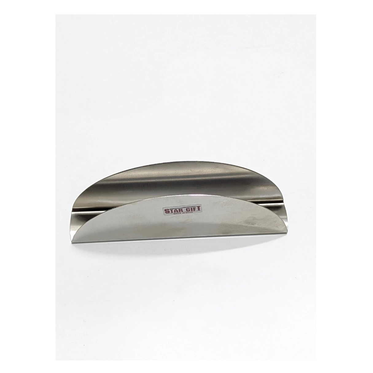 circular napkin holder. It's made of stainless steel, guaranteeing a long