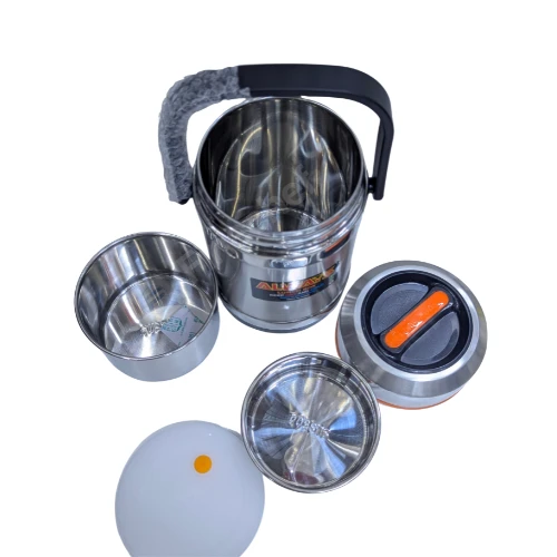 Lunch box for school kids designed to carry homemade meals safely and neatly during the school day. The 2-litre stainless steel container gives enough space for balanced meals like rice, chapati, snacks, or fruits packed from home. Its sturdy stainless steel body handles daily school use well, helping protect food while in school bags or during travel. Inside, the removable bowls help keep different foods separated so meals stay organized until lunchtime. The fitted lid helps keep food contained, while the carry handle makes it easier for children or parents to transport meals comfortably. The smooth stainless surface also washes easily after use and can be placed in the dishwasher, helping make daily lunch preparation simpler. Key Product Attributes