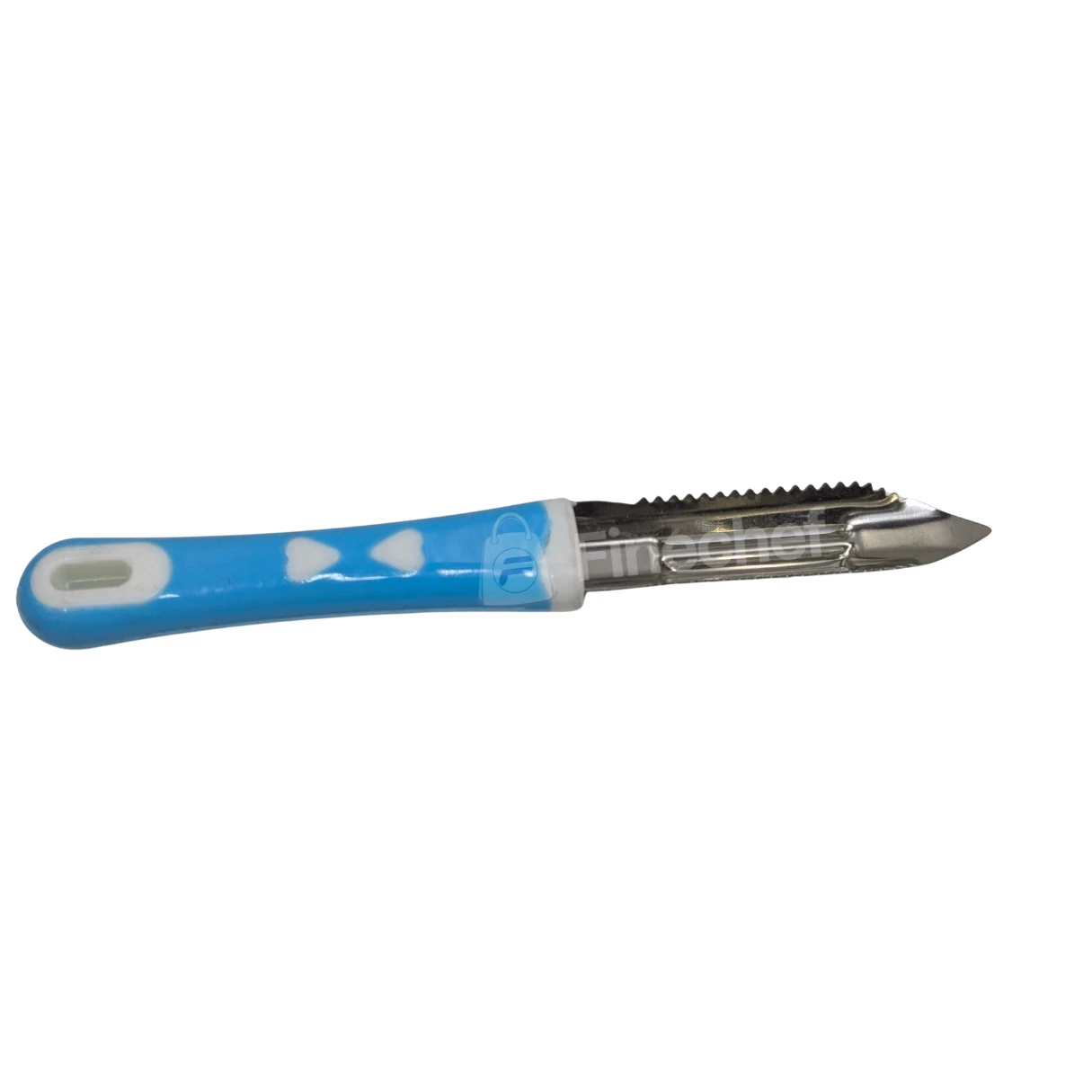 Peel your vegetables and fruits with ease using this dual-edged vegetable peeler. It features a dual-edge design, which makes peeling efficient and convenient. Its sturdy plastic handle design offers superior comfort and a steady grip when handling. This multipurpose peeler is lightweight, rust-resistant, and easy to clean, making it a must-have tool in your home kitchen or restaurant. |