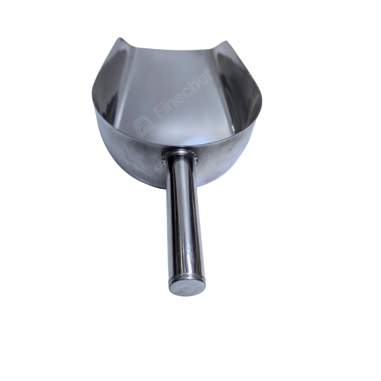 using this stainless steel flat scoop. It has a smooth, polished finish with a wide, shallow