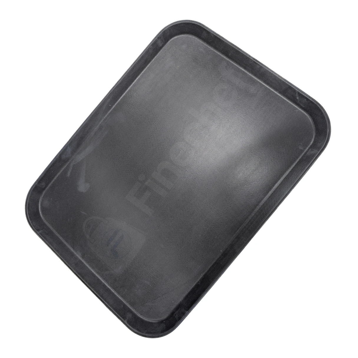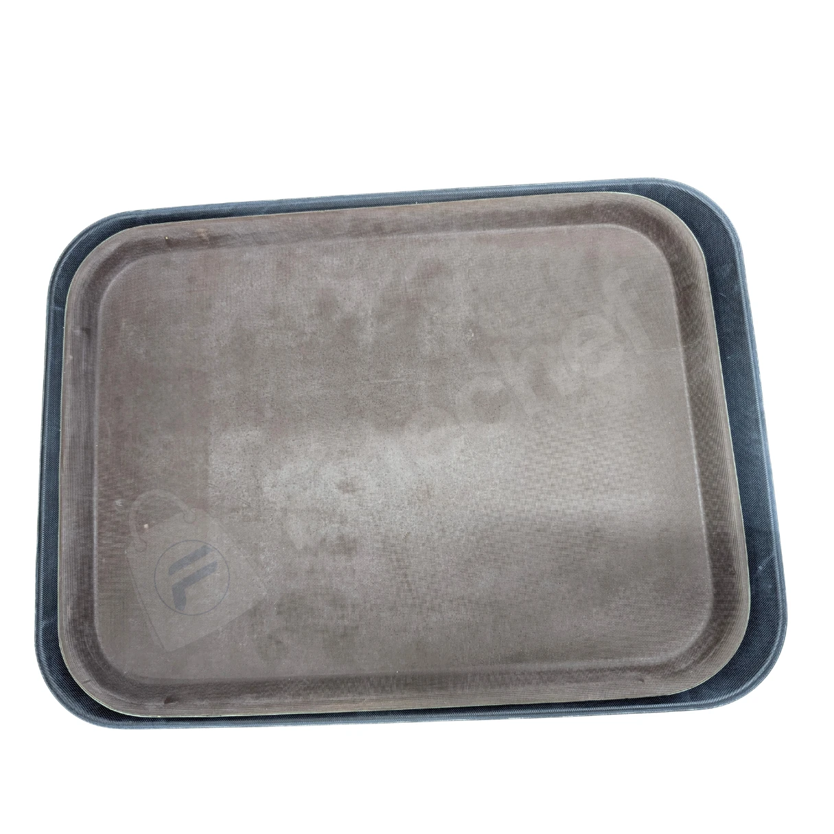 Use this rectangular oblong tray to serve food and drinks. It features a textured surface that promotes a secure grip and has raised edges that help prevent spillage. This serving tray comes in various sizes, making it perfect for restaurants, hotels, and home use.