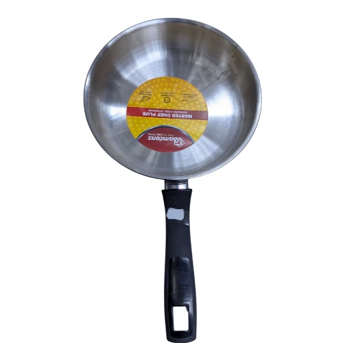The Master Chef Plus Frying Pan is made from stainless steel and built for everyday cooking. It has a double layered bottom that helps retain heat well, allowing food to cook evenly across the surface. This makes it practical for frying eggs, searing meat, sautéing vegetables, or preparing quick family meals. The stainless steel body feels sturdy and handles regular kitchen use with ease. The steady heat retention also helps reduce hot spots while cooking. A reliable stainless steel frying pan for home kitchens that need consistent results day after day. Key Products Attributes: