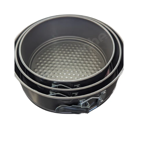 The Nonstick Springform Cake Pan Set is designed to make baking cakes and cheesecakes easy and convenient. The pans feature a removable base and a secure latch that allows you to release cakes smoothly without damaging their shape. The nonstick surface helps prevent food from sticking and makes cleaning easier after baking. This set includes medium to large size cake pans, making it suitable for baking different cake sizes for home kitchens, bakeries, restaurants, and dessert shops. It is ideal for cheesecakes, sponge cakes, layered cakes, and other baked desserts. |