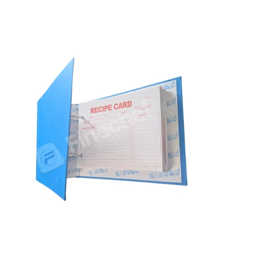 Organize your recipe cards with this portable recipe file, also known as a ring binder. It features a sturdy cover and a strong metal lever mechanism with two rings to hold cards securely. Its wide capacity enables it to hold a large number of your recipe cards, making it perfect for organized storage. |