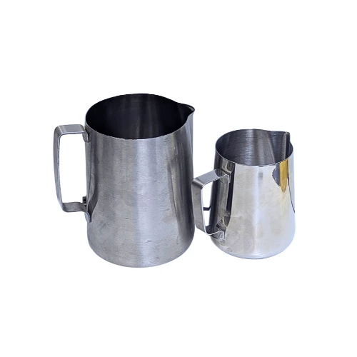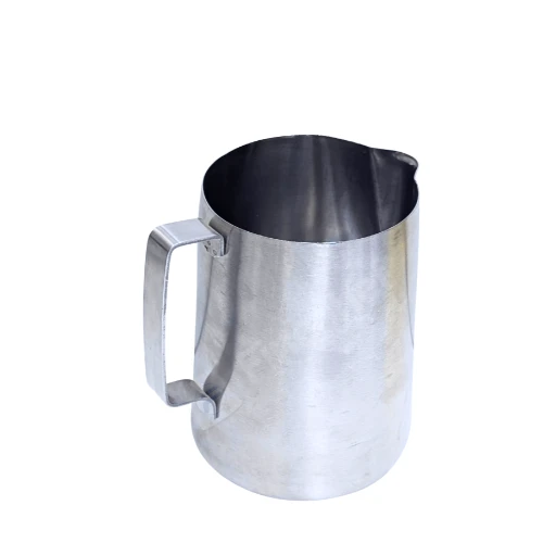 This milk frothing jug is a practical choice for steaming and pouring milk in busy cafés or at home. The smooth metal body heats quickly and evenly, helping you create creamy foam for cappuccino, latte, and other espresso drinks. Its firm handle feels steady in your hand, giving you better control while pouring. The shaped spout makes it easier to guide milk neatly into cups or try simple latte art patterns. Easy to rinse and wipe clean after use, this milk frothing pitcher works well for daily coffee service and professional barista setups. Product Attributes: